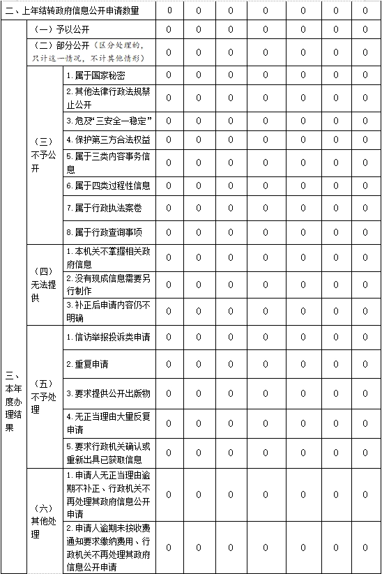 三、收到和处理政府信息公开申请情况